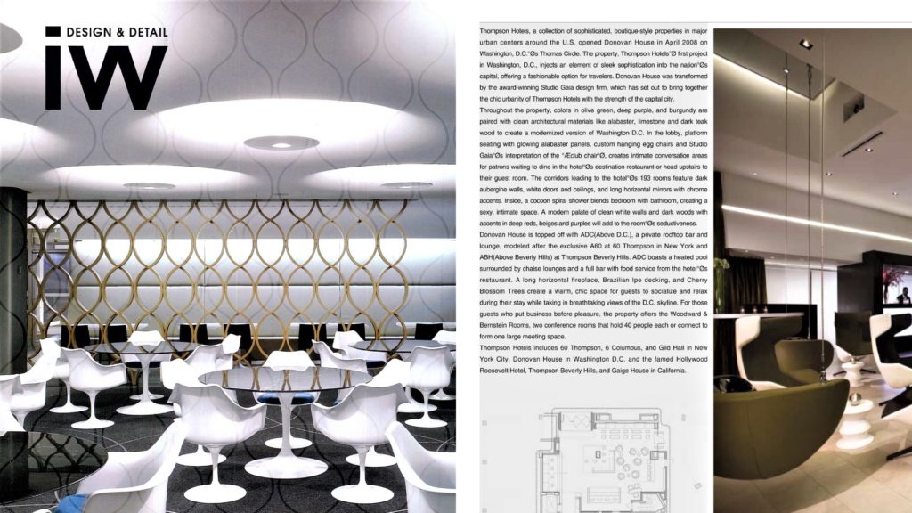 Interiors World Magazine (The Donovan House, a Thompson Hotel – Washington D.C.)